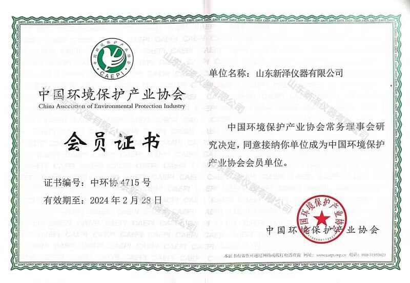 通過嚴(yán)格的資料審核以及業(yè)績評估,山東新澤儀器有限公司經(jīng)中國環(huán)境保護(hù)產(chǎn)業(yè)協(xié)會常務(wù)理事會研究決定,正式成為中國環(huán)境保護(hù)產(chǎn)業(yè)協(xié)會會員單位。