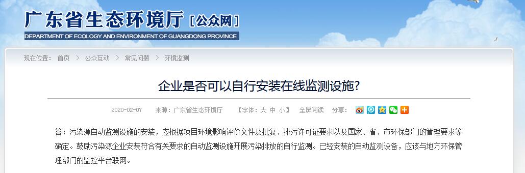 廣東環保省廳回復|企業是否可以自行安裝在線監測設施?