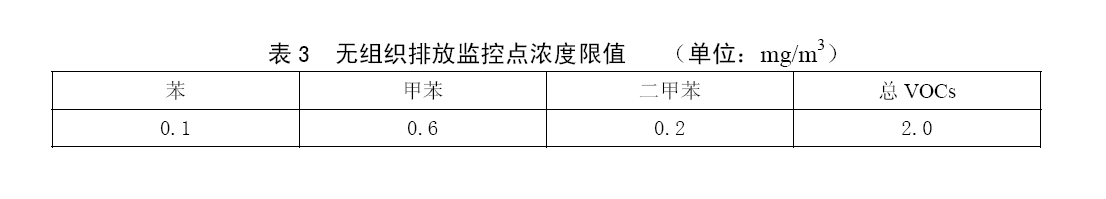無組織排放應執行表3的無組織排放監控點濃度限值。