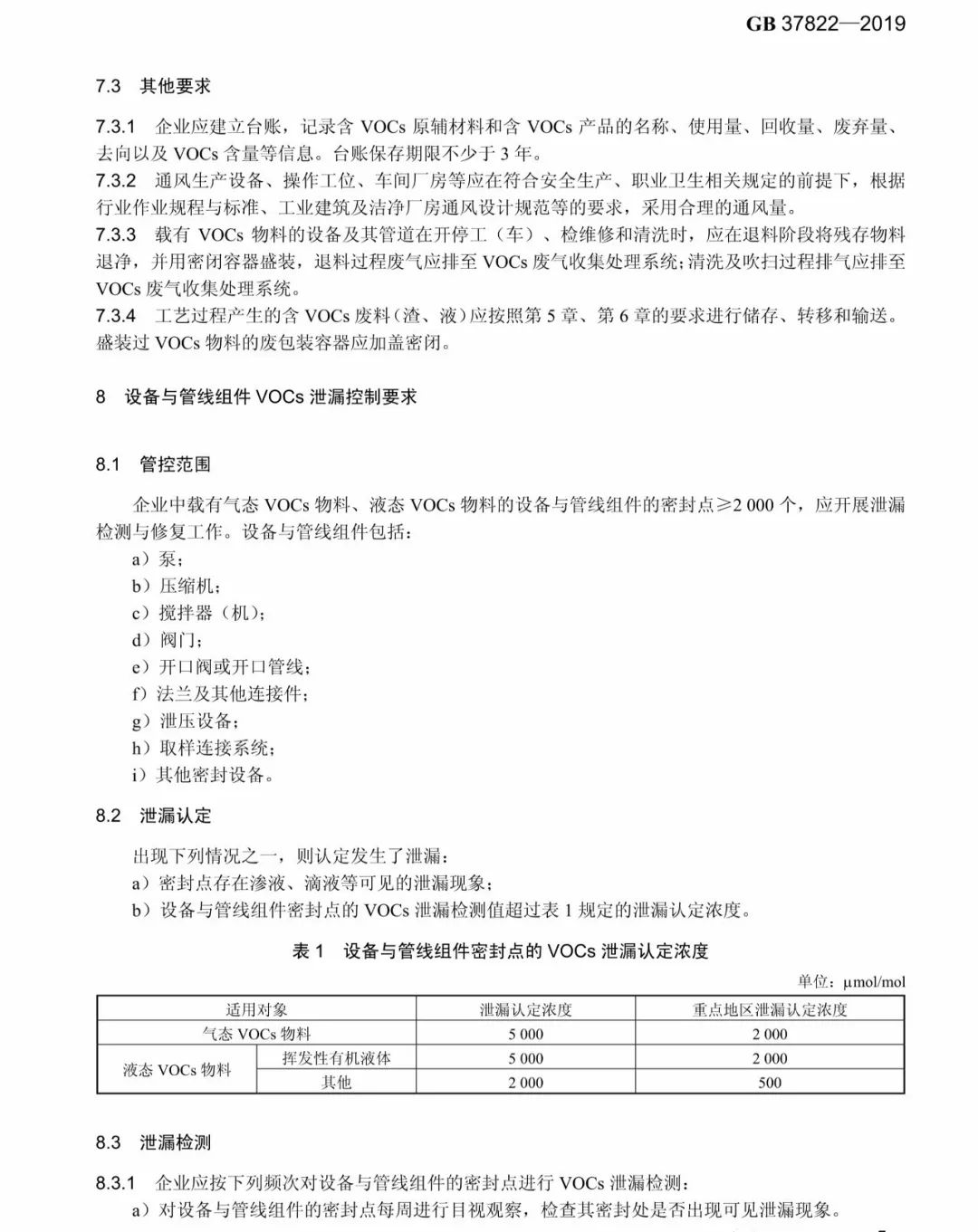 Standard for fugitive emission of volatile organic compounds