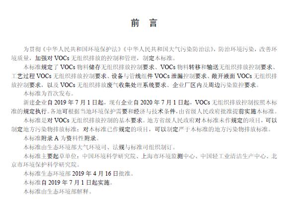 日前,環(huán)境部發(fā)布了《揮發(fā)性有機(jī)物無組織排放控制標(biāo)準(zhǔn)》(GB 37822—2019)。