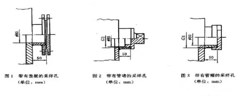 在選定的測定位置上開設采樣孔,采樣孔的內徑應不小于80mm,采樣孔管長應不大于50mm。不使用時應用蓋板、管堵或管帽封閉(如下圖所示)。當采樣孔僅用于采集氣態污染物時,其內徑應不小于40mm。