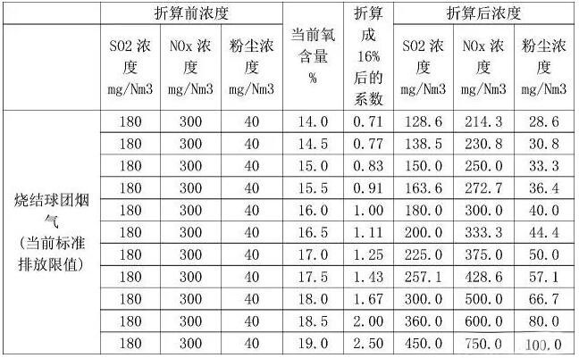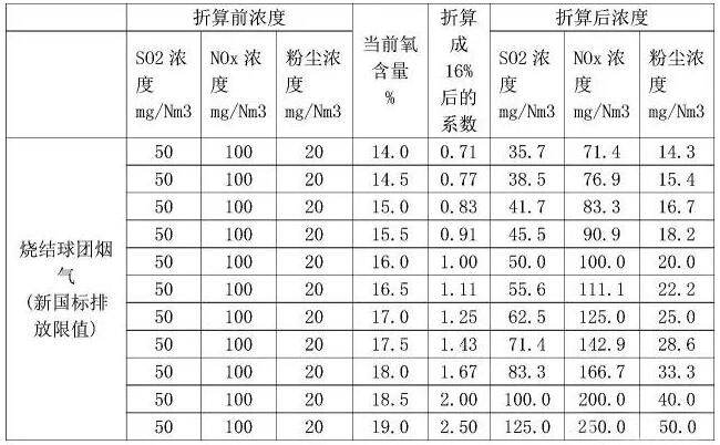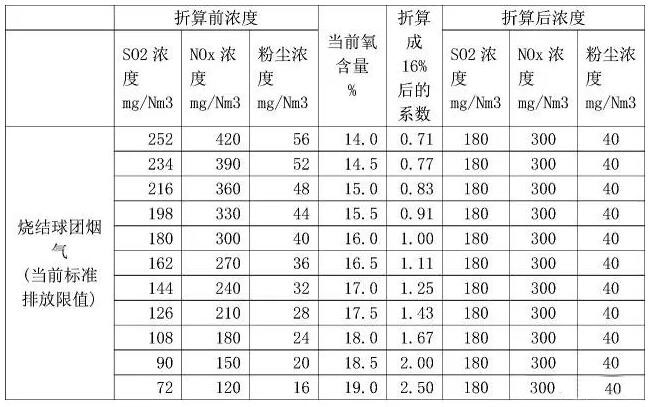 4)對于帶式焙燒機而言,濃度按氧含量16%折算并不科學(xué),因為帶式焙燒機的排氣量包括了冷卻廢氣,而燒結(jié)機的廢氣并沒有包括環(huán)冷廢氣。帶式焙燒機應(yīng)該按18.5%折算為科學(xué)。