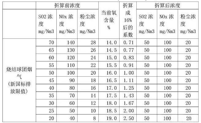 《鋼鐵燒結(jié)、球團工業(yè)大氣污染物排放標準》(GB28662-2012)修改單規(guī)定的基準含氧量,自2017年10月1日起執(zhí)行。根據(jù)編制說明,燒結(jié)和球團焙燒煙氣基準含氧量定為16%。則鋼廠燒結(jié)和球團實測焙燒煙氣的大氣污染物排放濃度,應(yīng)換算為16%條件下的排放濃度,并以此作為判定排放是否達標的依據(jù)。