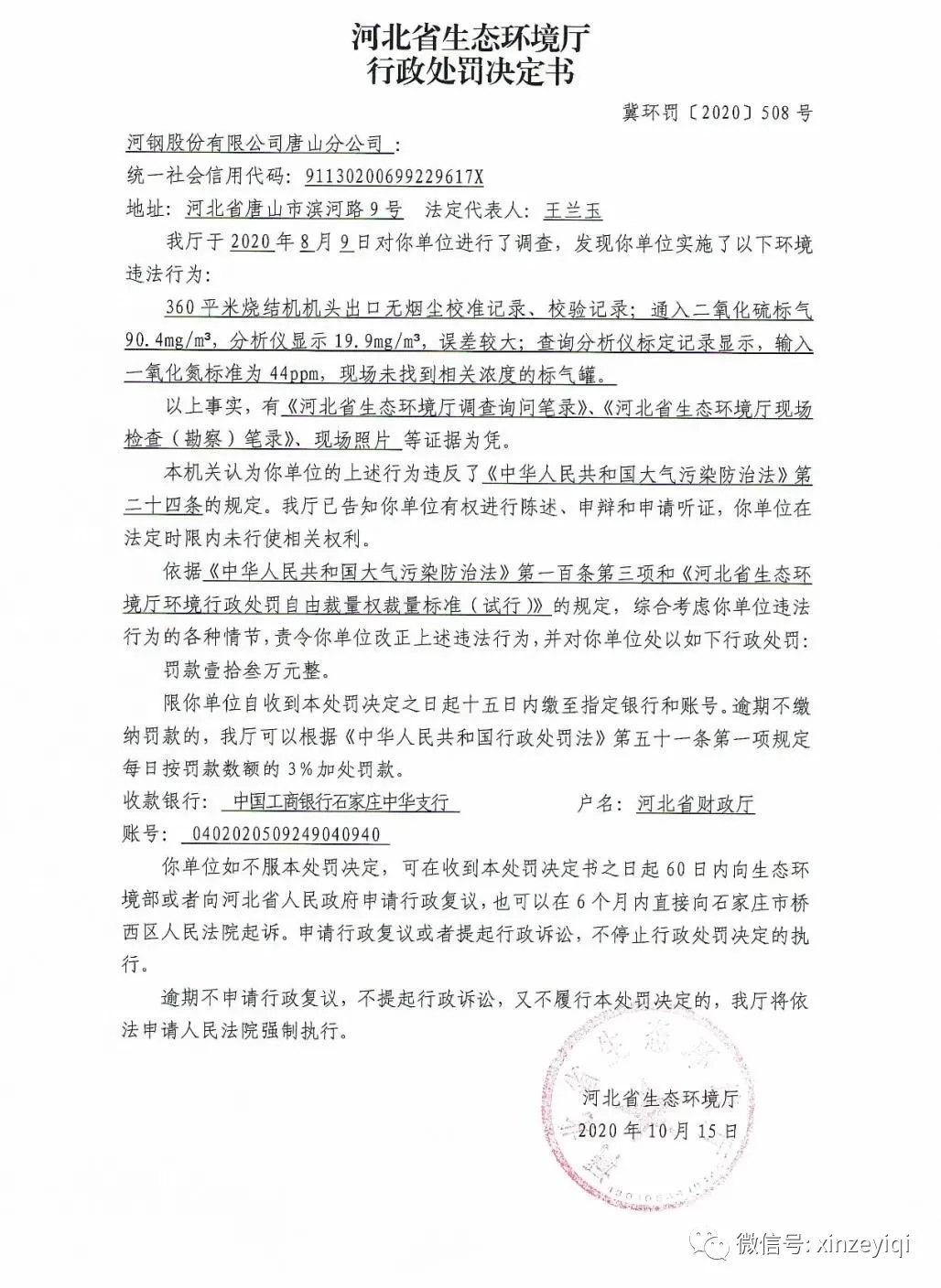 近日,河北省生態環境廳公開了2020年執法檢查中發現的幾起關于在線監測行政處罰決定書,從處罰決定書中看出多數是由于CEMS校準或通標氣測試不滿足技術指標要求,其中二氧化硫全程通標氣測試不滿足要求的情況尤為突出,以下是河北省生態環境廳對相關企業的行政處罰決定書。