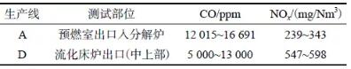 表4 A和D生產(chǎn)線預(yù)燃室或流化床爐出口煙氣成分圖2 三種不同系列的分解爐
