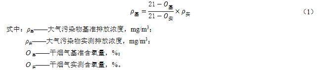 3 焦?fàn)t煙囪廢氣應(yīng)同時(shí)對排氣中氧含量進(jìn)行監(jiān)測,實(shí)測排氣筒中大氣污染物排放濃度應(yīng)按公式(1)換算為基準(zhǔn)含氧量為8%的大氣污染物基準(zhǔn)排放濃度,并以此作為達(dá)標(biāo)判定依據(jù)。其他生產(chǎn)設(shè)施以實(shí)測排放濃度作為達(dá)標(biāo)判定依據(jù),不得稀釋排放。