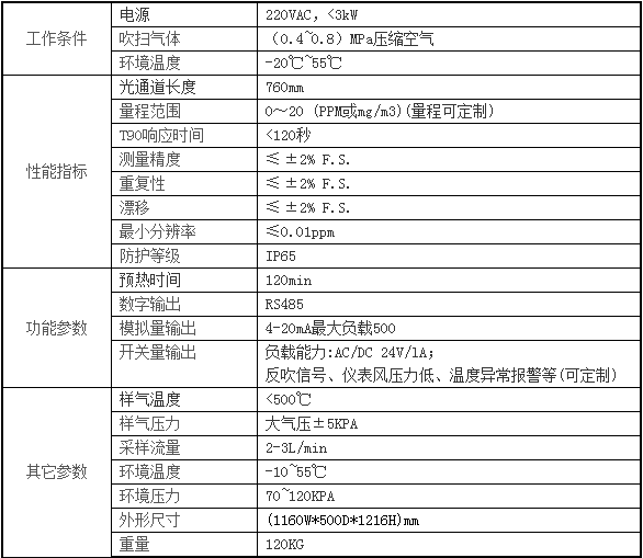 ●半導體激光的譜寬小于0.001nm,避免粉塵和水分交叉干擾;