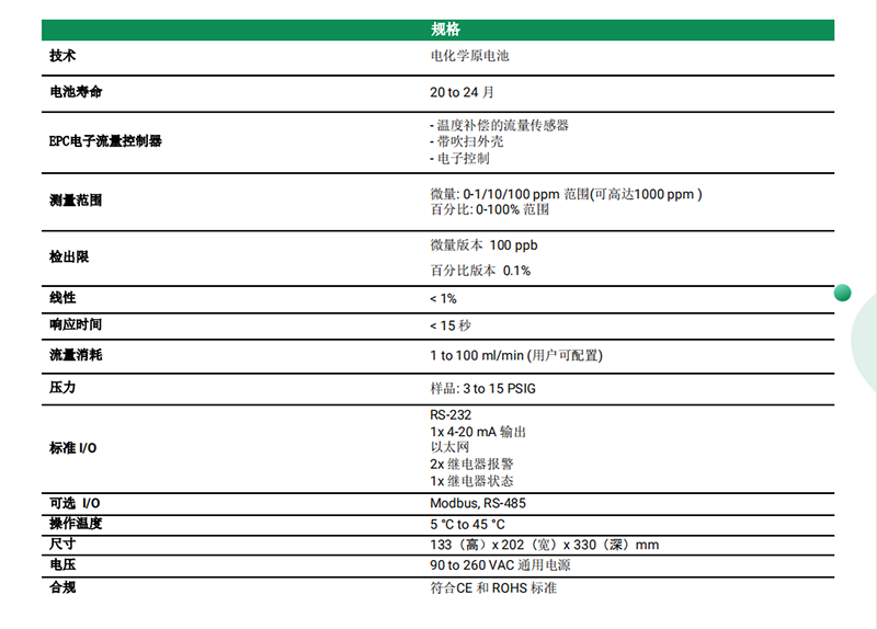 氬,氫,氮,氦,二氧化碳中痕量氧分析